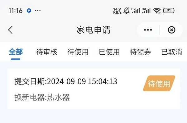 【查看補貼券】用戶點擊進入“補貼券狀態(tài)查詢”界面,可以查看已領取的補貼券及其狀態(tài)。
